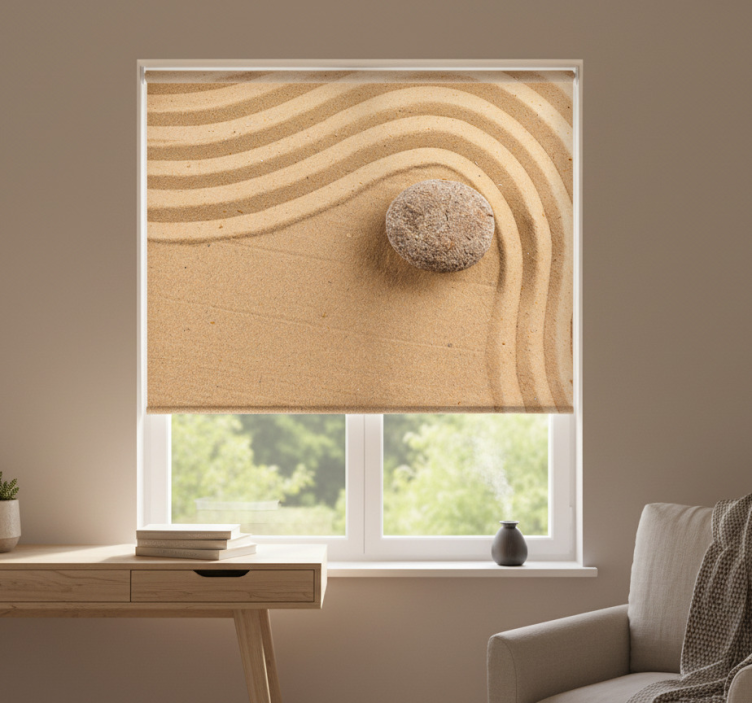 예술적인 배치는 부드러운 곡선과 물결이 있는 모래 풍경을 특징으로 하며, 자연의 우아함을 더하는 외로운 돌이 함께합니다. 이 디자인은 평온함과 단순함을 강조하며, 조화로운 질감의 혼합이 고요한 야외 분위기를 자아냅니다. 에스토르 베이지 질감 있는 선 스피어