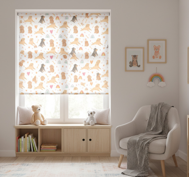 아동용 블라인드 귀여운 강아지와 무지개 패턴