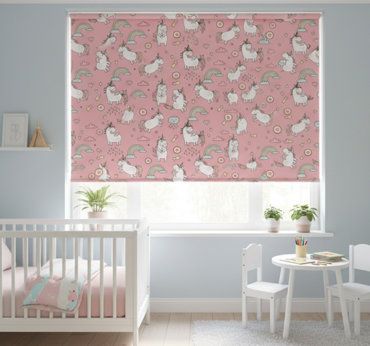 아동용 블라인드 핑크 유니콘과 무지개