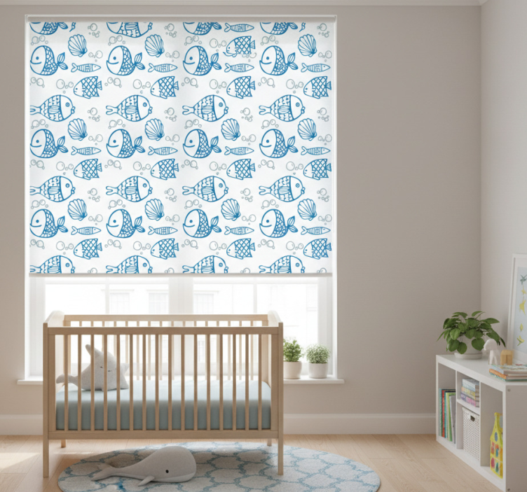 아동용 블라인드 - 흰 배경에 그려진 파란 물고기는 귀여운 디자인으로 아이들의 방을 더욱 아늑하고 즐거운 공간으로 만들어줍니다. 이 블라인드는 화사한 파란 물고기 그래픽으로 장식되어 있어 아이들의 상상력을 자극하며, 방의 분위기를 밝고 경쾌하게 바꿉니다.