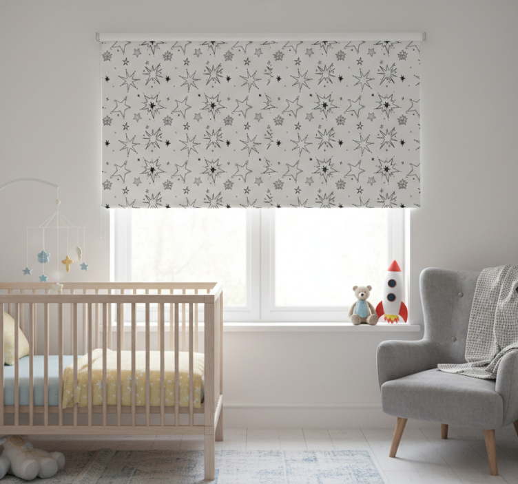 다양한 별 모양이 포함된 매력적인 디자인으로, 단순하고 복잡하며 음영이 있는 별들이 반짝이는 요소들과 얽혀 있습니다. 이 배치는 역동적인 천체 테마를 제공하여 경이로움과 상상력을 불러일으키기에 완벽합니다. 밝은 배경에 대비되는 검은 선들이 시각적 매력을 더욱 높입니다. 아동용 블라인드 별 실루엣 패턴
