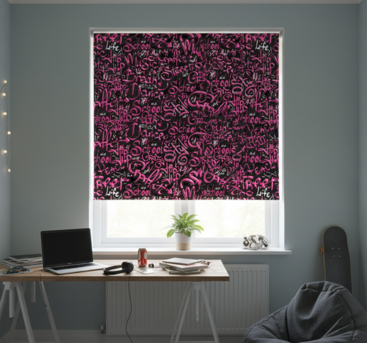 청소년용 블라인드 핑크와 블랙 그래피티의 매력