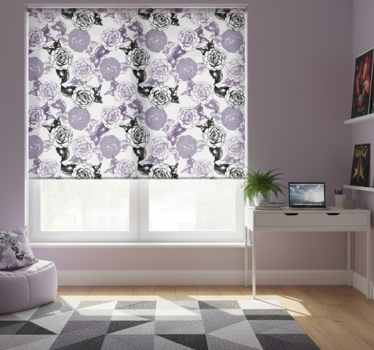 청소년용 블라인드 보라색과 검은 실루엣 꽃 패턴