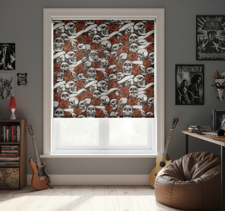눈에 띄는 패턴은 정교하게 디자인된 해골과 생생한 빨간 장미가 얽혀 있는 모습을 특징으로 합니다. 섬세한 꽃과 불길한 해골의 대조는 시각적으로 매력적인 대비를 만들어내며, 생명과 죽음의 주제를 표현합니다. 디자인의 복잡성은 관람객이 각 요소의 세부 사항을 탐색하도록 초대합니다. 청소년용 블라인드 해골과 장미는 독특한 디자인으로 방의 분위기를 한층 더 고급스럽게 만들어 줍니다. 그래픽으로 표현된 해골과 장미의 조화는 청소년들의 감성을 자극하며, 방의 포인트 아이템으로 활용할 수 있습니다. 이 제품은 감각적인 디자인과 실용성을 동시에 갖춘 블라인드입니다.