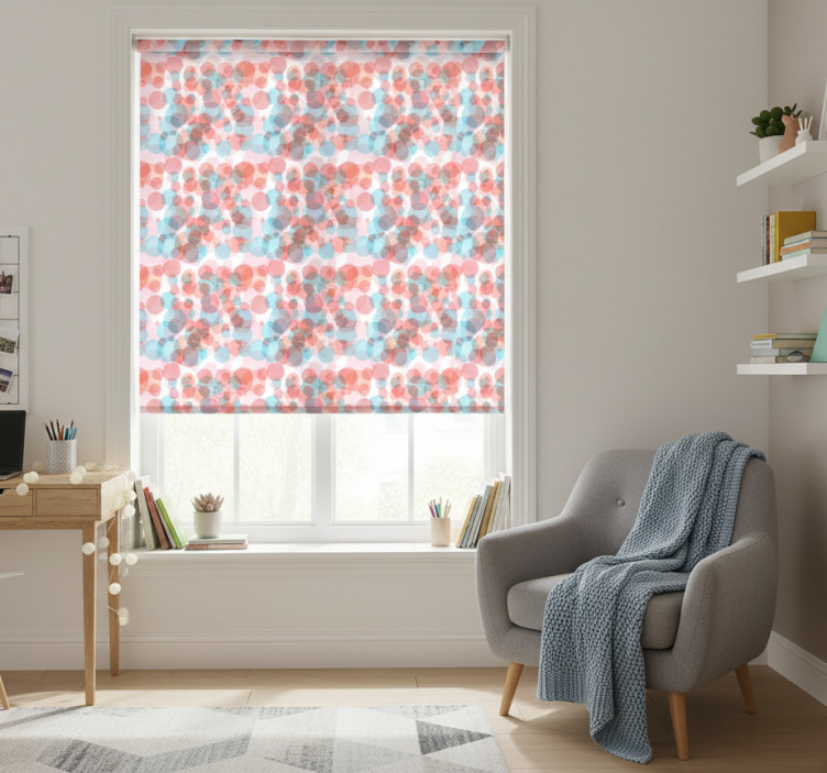 파란색, 빨간색, 그리고 파스텔 핑크색의 생동감 넘치는 원들이 서로 얽혀 에너지 넘치는 패턴을 형성합니다. 겹쳐진 요소들은 깊이감과 움직임을 느끼게 하여, 거품이나 생기 있는 꽃들을 연상시키며, 시선을 사로잡는 매력적인 비주얼을 만들어냅니다. 청소년용 블라인드 스위트 버블는 세련된 디자인과 기능성을 겸비한 제품으로, 방 안에 활력을 불어넣는 그래픽적인 요소가 특징입니다. 이 블라인드는 청소년의 취향을 반영하여 제작되었으며, 독특한 색상과 디자인으로 방의 분위기를 한층 더 돋보이게 합니다.