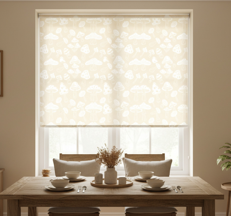 dining room roller blind 레스토랑용 블라인드 베이지 버섯 디자인은 높은 품질과 세련된 디자인을 자랑합니다. 고객의 다양한 요구를 충족시키기 위해 100% 맞춤형 측정이 가능하며, 빛의 양과 프라이버시를 고려하여 3가지 질감의 블라인드를 선택할 수 있는 옵션이 있습니다.