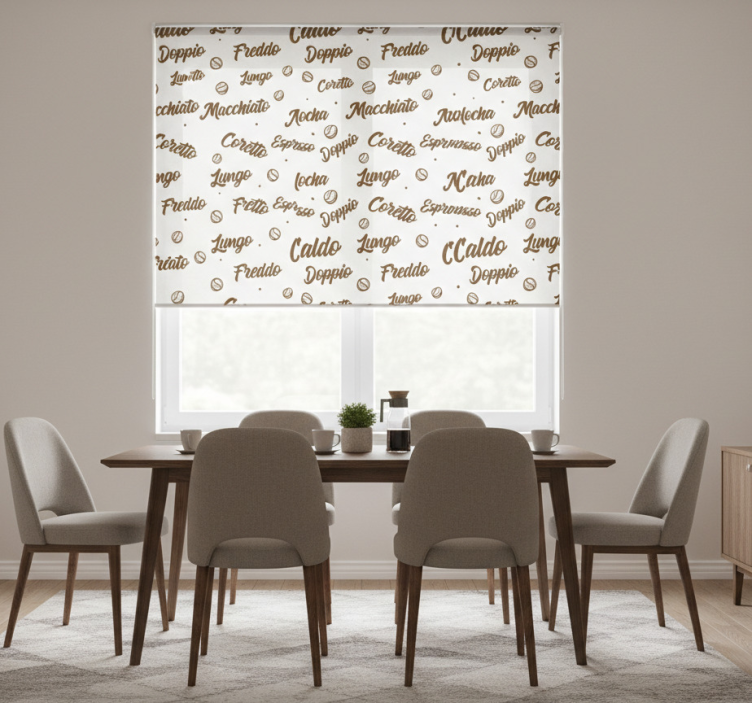 다양한 커피 용어인 'Espresso', 'Macchiato', 'Latte'가 포함된 생동감 넘치는 디자인과 귀여운 커피콩 일러스트가 어우러져 있습니다. 따뜻하고 초대하는 색조는 아늑한 분위기를 만들어내며, 커피 문화에 대한 열정과 그 다양한 매력을 강조하여 모든 커피 애호가에게 완벽한 요소를 제공합니다. 레스토랑용 블라인드 매일 커피와 함께는 세련된 디자인과 실용성을 겸비한 제품입니다. 이 블라인드는 현대적인 그래픽 디자인으로 레스토랑의 분위기를 한층 더 업그레이드해 줍니다. 고객님은 이 제품을 통해 자연 채광을 조절하고 아늑한 분위기를 연출할 수 있습니다.