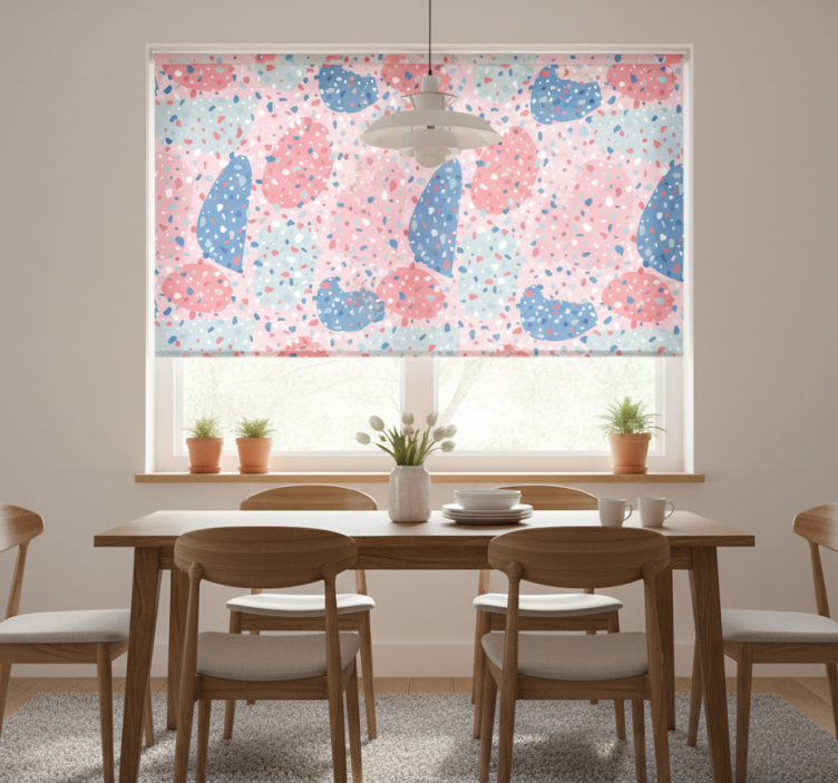 다양한 형태가 섞인 생생한 패턴으로, 분홍색, 파란색, 민트색의 색조가 어우러져 있습니다. 대비되는 점들이 산재해 있어 이 역동적인 디자인은 시각적인 흥미를 자아냅니다. 색상과 형태 간의 유쾌한 상호작용을 보여주며, 자연에서 발견되는 에너지를 연상시키고, 활기찬 분위기를 조성합니다. 레스토랑용 블라인드 핑크 테라조는 세련된 디자인과 기능성을 결합한 제품으로, 공간의 분위기를 한층 더 업그레이드합니다. 핑크 테라조 패턴은 현대적인 감각을 더하며, 다양한 인테리어 스타일과 조화를 이루어 레스토랑의 매력을 한층 끌어올립니다. 이 제품은 단순히 시각적인 아름다움뿐만 아니라, 실용성 또한 갖춘 완벽한 선택입니다.