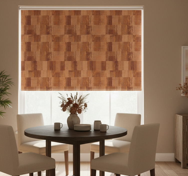 dining room roller blind 레스토랑용 블라인드 테라코타 사각 패턴은 설치가 간편하여 다양한 공간에 쉽게 적용할 수 있습니다. 창문에 맞춤형으로 제작된 이 블라인드는 두 번의 클릭만으로 쉽게 조립할 수 있으며, 청소 또한 간편하여 실용성을 더합니다. 고객은 원하는 프라이버시와 빛의 양에 따라 3가지 질감의 블라인드를 선택할 수 있습니다.