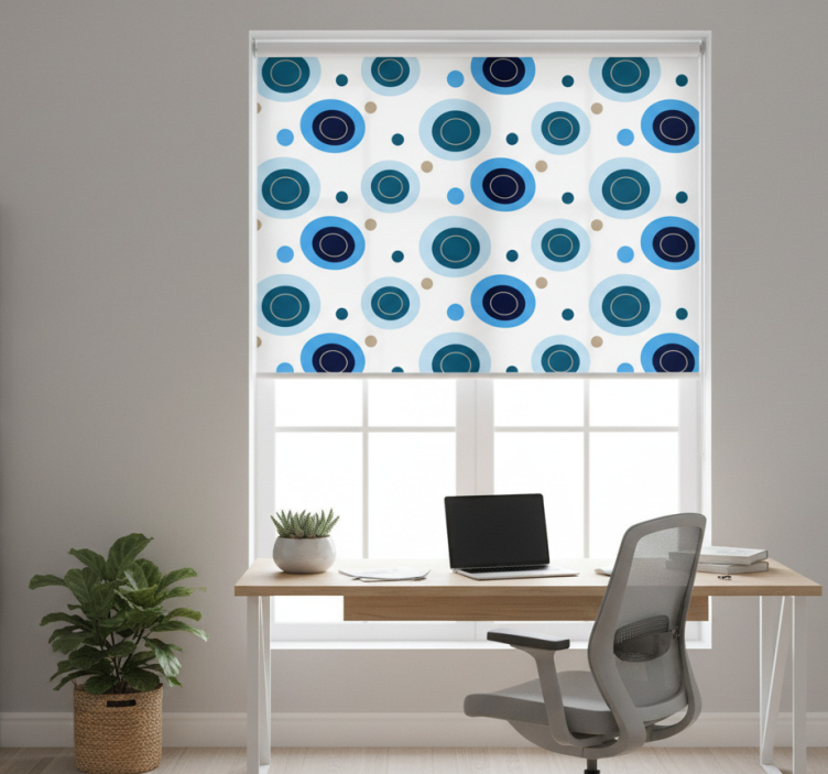 다양한 파란색 음영의 동적인 원형 모티프가 시각적으로 매력적인 패턴을 만듭니다. 각 원은 대비되는 중심을 특징으로 하여 시각적 깊이를 더합니다. 보색으로 된 작은 점들이 미세한 변화를 추가하여 디자인을 생동감 있고 매력적으로 만듭니다. 이 에너제틱한 패턴은 어떤 공간에도 개성을 더하는 데 완벽합니다. 홈 오피스 블라인드 파란색 점 꽃무늬