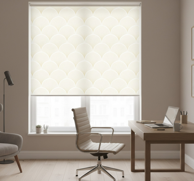 팬 모양의 복잡한 배열이 시각적으로 매력적인 패턴을 만들어내며, 각 요소의 바닥에서 방사형으로 퍼지는 부드러운 선들이 특징입니다. 이 편안한 디자인은 고요함을 불러일으키며, 밝은 색상 팔레트는 다양한 장식 테마에 적합한 다재다능함을 보장합니다. 홈 오피스 블라인드 은행나무 팬 패턴