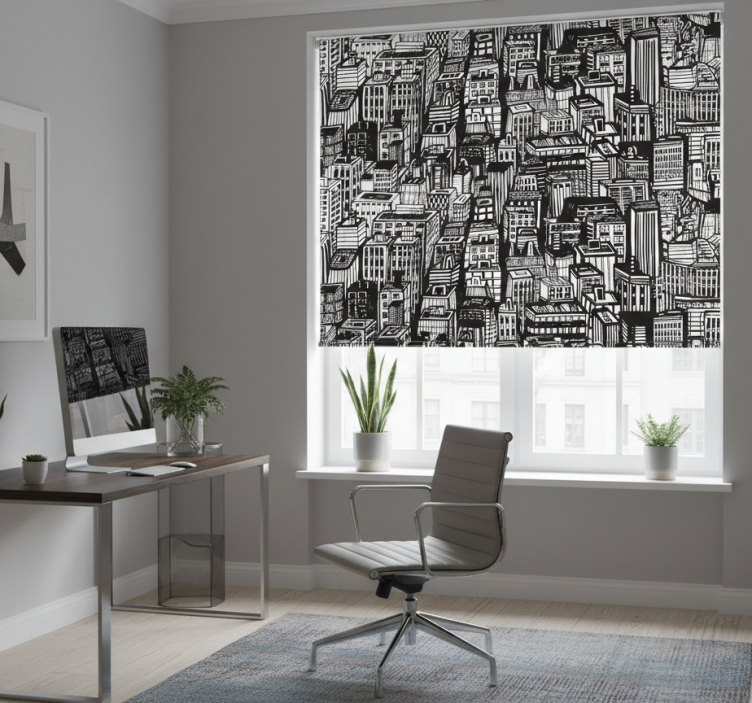 다양한 높은 건물과 다양한 건축 스타일로 가득한 복잡한 도시 풍경을 담아낸 인상적인 디자인. 이 단색 일러스트는 정교한 디테일을 특징으로 하며, 지붕, 창문, 거리 등을 보여줍니다. 이 디자인은 현대적 미학을 즐기는 사람들에게 완벽한 바쁜 도시 생활의 감각을 불러일으킵니다. 홈 오피스 블라인드 뉴욕 스카이스크래퍼