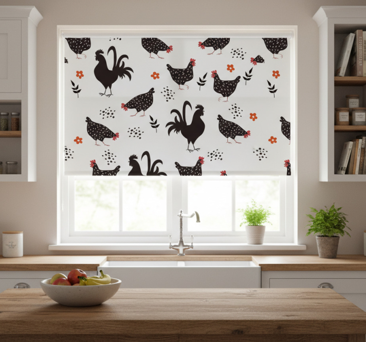 주방 블라인드 흑백 수탉 디자인