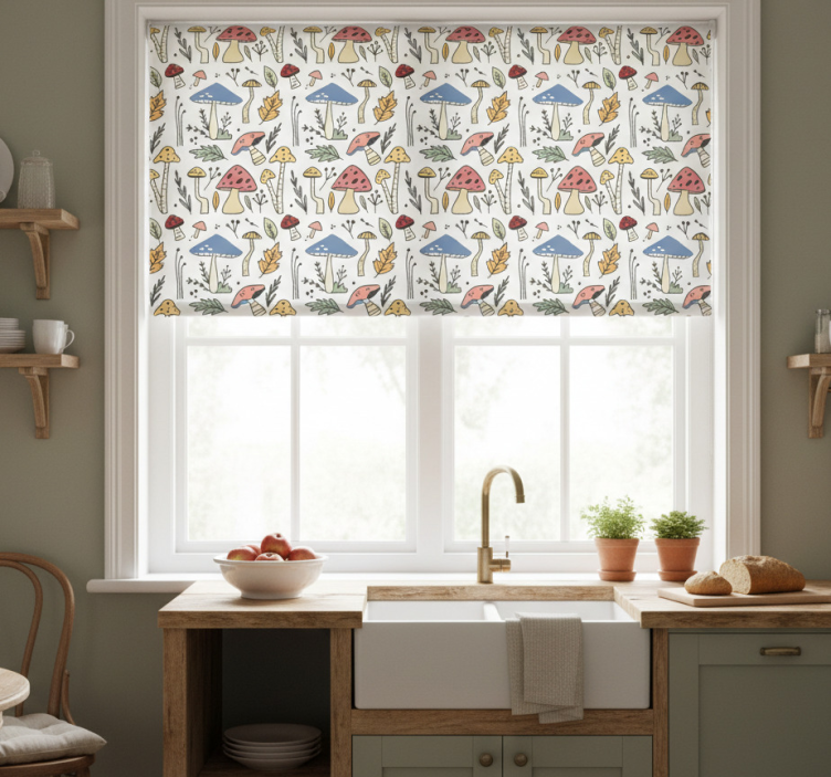 주방 블라인드 손으로 그린 버섯 패턴