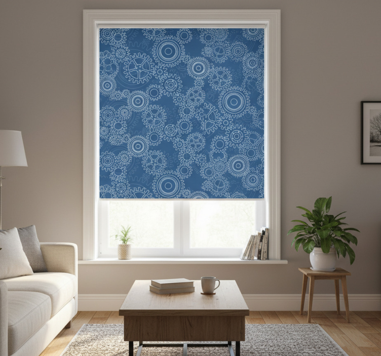 다양한 기어들이 조화롭게 배열된 매력적인 패턴. 이 디자인은 원형 형태와 복잡한 세부 사항을 혼합하여 형태와 기능의 상호작용을 보여줍니다. 풍부한 파란색 배경은 기어의 시대를 초월한 품질을 강조하여 눈길을 사로잡는 시각적 요소로 만듭니다. 모던 블라인드 3d 기계 체인 패턴