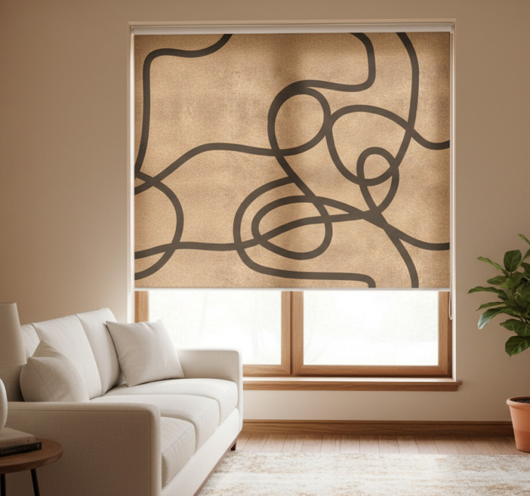 매혹적인 디자인은 따뜻하고 질감 있는 표면 위에 복잡한 검은 선들이 엮이고 루프를 형성하는 모습을 특징으로 합니다. 이 패턴은 추상 예술이나 도시 풍경을 연상시키는 매력적인 시각적 리듬을 만들어냅니다. 흐르는 형태는 움직임의 감각을 불러일으키며, 어떤 공간에도 현대적인 느낌을 더합니다. 모던 블라인드 불규칙한 갈색 선