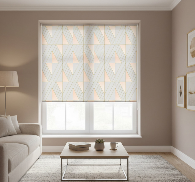 부드러운 복숭아 색조와 섬세한 금선이 어우러진 매혹적인 삼각형 패턴의 배열. 각 디자인 요소는 구조적인 각도와 미세한 그라데이션을 통합하여 시각적인 리듬을 만들어내며, 시선을 사로잡습니다. 전체 장식에 부담을 주지 않으면서 공간에 예술적인 감각을 더하고자 하는 분들에게 이상적입니다. 모던 블라인드 레이어드 기하학적 패턴은 세련된 디자인과 현대적인 감각으로 여러분의 공간에 스타일을 더할 수 있는 완벽한 제품입니다. 이 블라인드는 기하학적 패턴으로 처리되어 있어, 어떤 인테리어와도 잘 어우러지며, 세련된 느낌을 제공합니다.