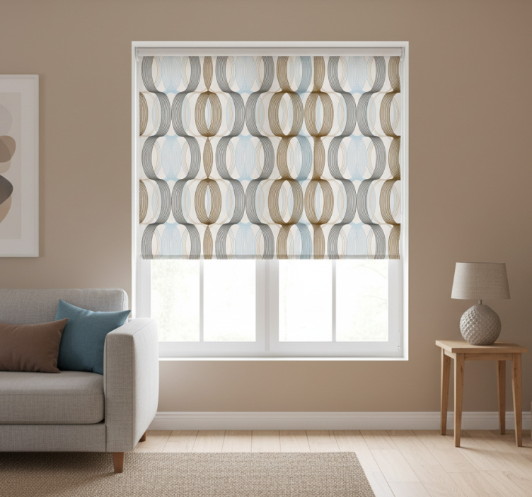 복잡한 패턴은 부드러운 파란색 포인트가 가미된 자연색의 원형 모양들이 얽혀 있는 형태로 구성되어 있습니다. 역동적인 선들이 리드미컬한 흐름을 만들어내어 시각적으로 매력적인 구성을 형성합니다. 이 스타일리시한 디자인은 현대적인 미학을 포착하여 현대 인테리어를 더욱 돋보이게 합니다. 모던 블라인드 타원형 라인은 현대적인 디자인이 돋보이는 제품으로, 우아한 곡선과 세련된 마감이 특징입니다. 이 블라인드는 공간을 더욱 아늑하고 쾌적하게 만들어 주며, 어떤 인테리어와도 잘 어울립니다. 또한 다양한 질감의 옵션이 있어 고객의 취향에 맞게 선택할 수 있는 장점이 있습니다.