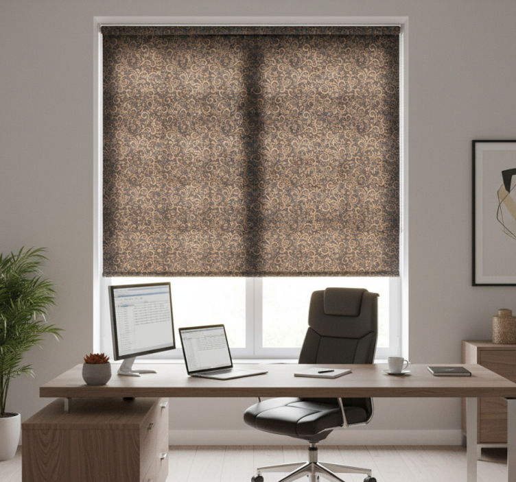 복잡한 꽃무늬가 금색과 짙은 파란색의 음영으로 우아하게 얽혀 있어 세련된 시각적 매력을 만들어냅니다. 다양한 소용돌이와 곡선이 자연의 형태를 모방하여 고전적인 아름다움을 불러일으킵니다. 이 정교한 디자인은 매력과 깊이를 더해주어 어떤 공간을 향상시키는 데 인상적인 선택이 됩니다. 사무실 블라인드 크레이븐 수제 제작