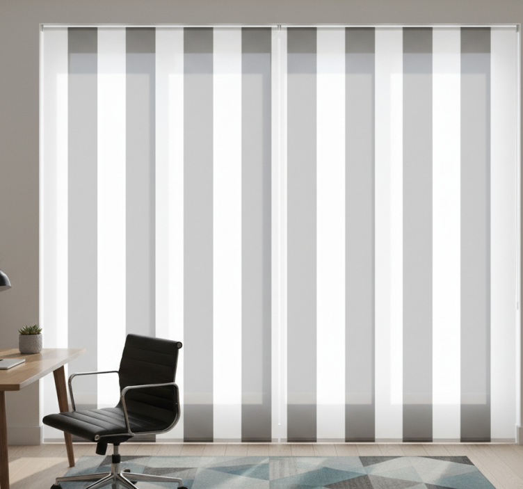 정보 사무실 블라인드 회색과 흰색 줄무늬