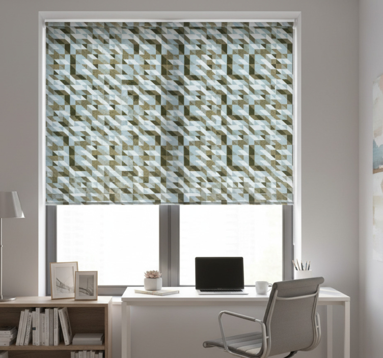 편안한 파란색과 녹색의 톤으로 구성된 매력적인 상호 연결된 기하학적 형태들이 역동적인 리듬을 만들어냅니다. 디자인은 교차하는 각진 형태와 부드러운 선들이 번갈아 나타나며, 평온함을 불러일으킵니다. 패턴의 상호작용은 시각적인 흥미를 더해 눈길을 끌고 전체적인 미적 감각을 풍부하게 합니다. 사무실 블라인드 현대 삼각형