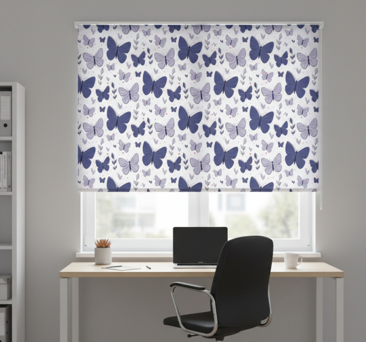 사무실 블라인드 핑크와 블루 톤 나비 패턴