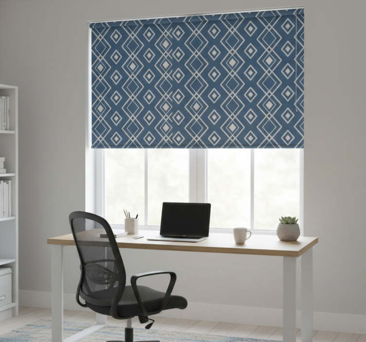 복잡한 디자인으로, 크기와 방향이 서로 다른 다이아몬드 모양이 섞여 있으며, 깊은 파란색 배경 위에 놓여 있습니다. 기하학적 배열은 각도와 선의 조화로운 혼합을 보여주며, 시각적으로 매력적인 모티프를 만들어 주어 주목을 끌고 어떤 환경에도 개성을 더합니다. 사무실 블라인드 슈퍼프레스코 이지 네이비 기하학적