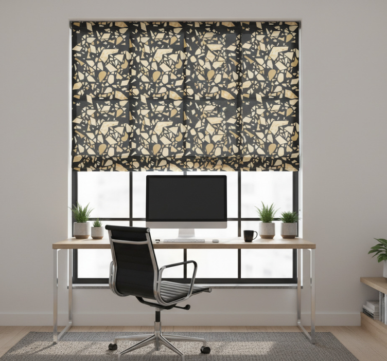 우아하고 현대적인 디자인의 사무실 블라인드 테라조 스타일 블랙 골드는 여러분의 공간을 한층 더 세련되게 만들어 줍니다. 테라조 패턴은 매력적인 시각적 효과를 제공하며, 블랙과 골드의 조화는 고급스러움을 강조합니다. 이 블라인드는 단순한 커튼을 넘어서 스타일과 기능성을 모두 갖춘 인테리어 요소로 자리잡고 있습니다.