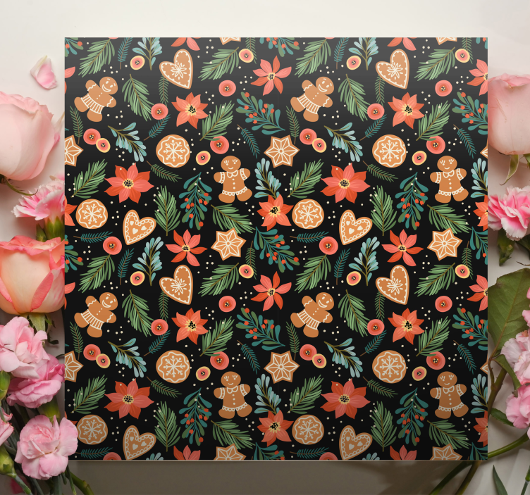 참조:: Q6490축제 요소는 생강빵 인형, 하트, 그리고 포인세티아 꽃으로 구성되어 있으며, 모두 생동감 있는 잎사귀로 장식되어 있습니다. 이 패턴은 장식용 별과 오렌지 조각을 포함한 즐거운 디테일로 기쁜 휴일 분위기를 담고 있습니다.