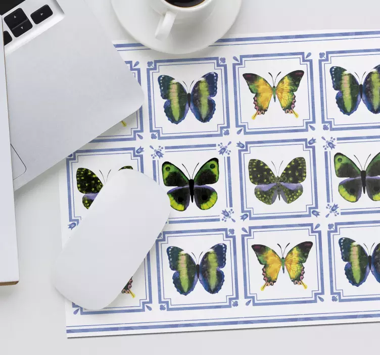 이 제품은 디자인 타일 무늬 배경에 인쇄된 사랑스러운 다양한 색상의 나비를 포함하고 있습니다. 품질이 우수하며 마우스에 더 나은 표면을 제공하며 외부 효과에 대한 내성이 있습니다. 마우스로 컴퓨터 작업을 즐길 수 있는 제품입니다.