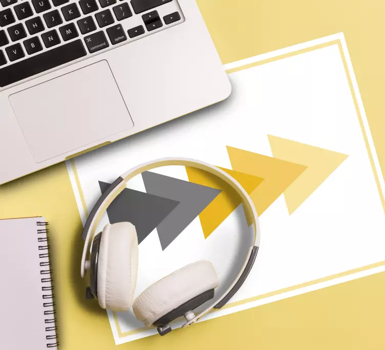 디자인은 진보와 방향을 상징하는 역동적인 화살표 모티프를 특징으로 합니다. 매력적인 색상의 조합으로 움직임과 에너지를 표현하여 동기를 부여하는 환경에 적합합니다. 화살표는 점진적인 순서로 배열되어 있으며, 발전의 주제를 강화합니다.