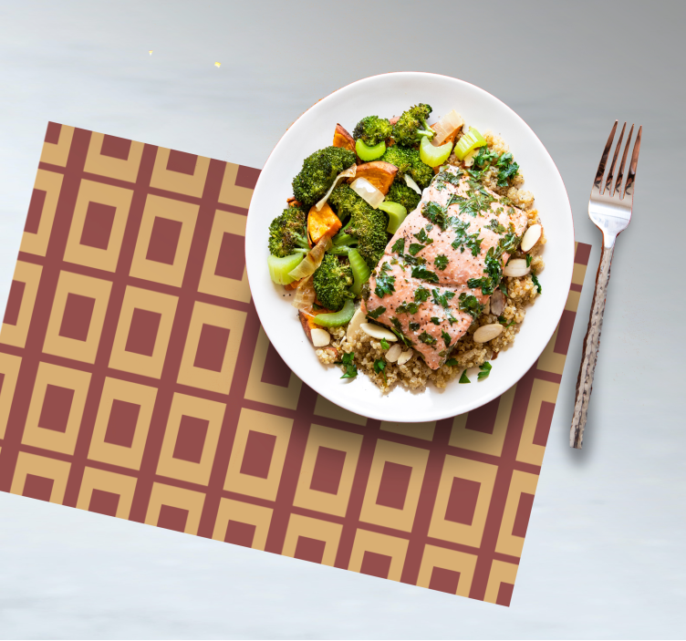 거실을 위한 갈색과 베이지색 사각형 패턴 플레이스매트.
