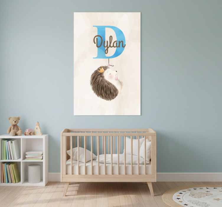 포스터 어린이 침실 고슴도치 이니셜과 이름 포함