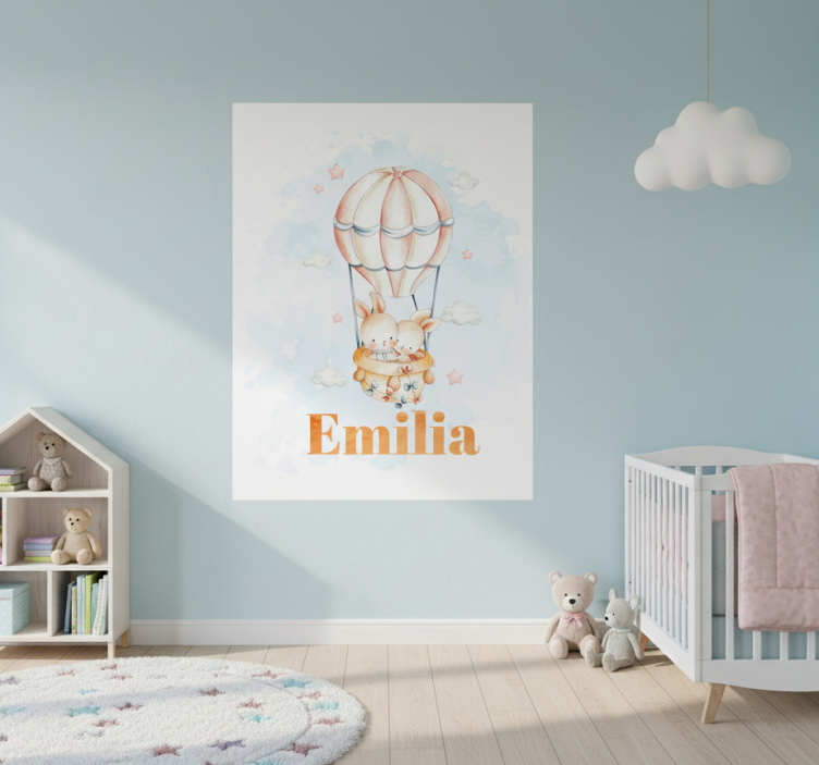 이 매력적인 일러스트는 귀여운 두 마리 토끼가 행복하게 열기구에 떠 있는 모습을 담고 있으며, 부드러운 구름과 파스텔 별들로 둘러싸여 있습니다. 'Emilia'라는 이름이 아래에 두드러지게 표시되어 있어 환상적인 분위기를 더해줍니다. 어린이 방에 적합한 이 작품은 모험과 순수함의 감각을 불러일으킵니다. 포스터 어린이 침실 파스텔 풍선과 귀여운 동물들은 아기자기하고 사랑스러운 디자인으로, 아이들의 꿈과 상상력을 자극하는 매력적인 작품입니다. 이 제품은 귀여운 동물들과 파스텔 색상의 풍선들이 조화를 이루어 어린이 방의 분위기를 한층 밝고 행복하게 만들어 줍니다. 아이들이 좋아하는 캐릭터들로 구성되어 있어 방 안에 특별한 매력을 더하는 동시에 창의력을 자극하는 역할을 합니다.