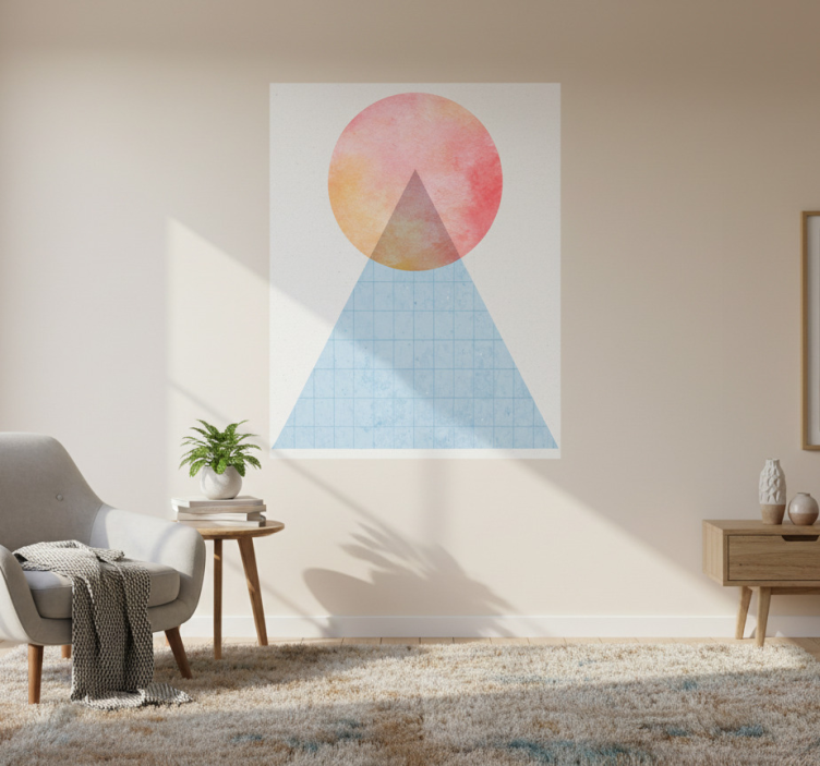 참조:: G873이 작품은 부드럽고 추상적인 구성으로, 파스텔 색상의 태양이 파란색 삼각형 모양 위에 위치하고 있으며, 이 삼각형은 그리드 패턴으로 장식되어 있습니다. 이 우아한 디자인은 평온함을 발산하여 현대 인테리어에 이상적인 추가 요소가 됩니다. 햇빛은 부드러운 그림자를 드리워 공간의 고요한 분위기를 더욱 강조합니다.