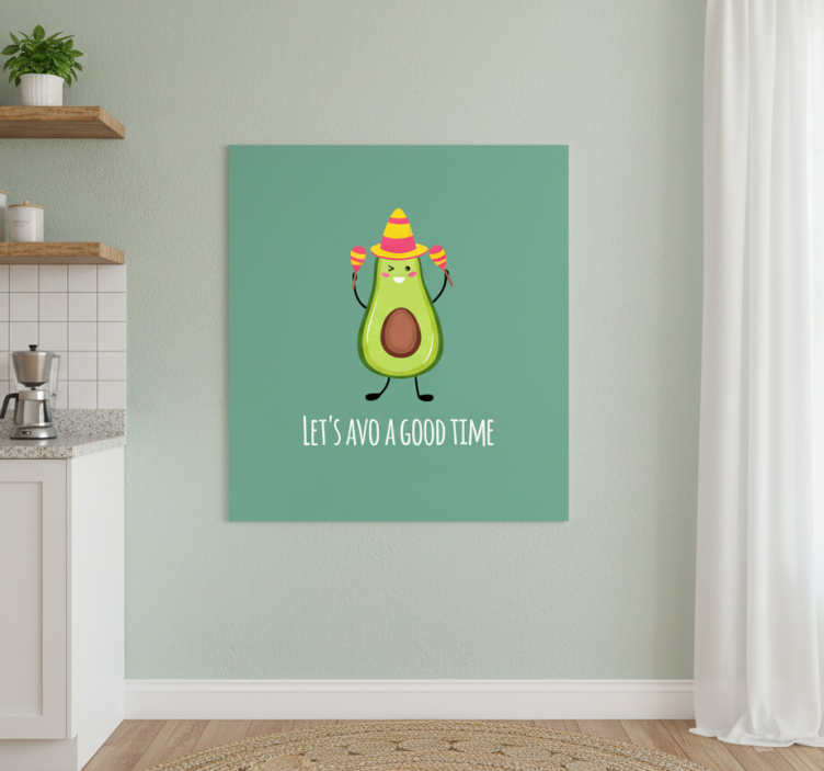 이 생기 넘치는 작품은 다채로운 모자를 쓴 즐거운 아보카도 캐릭터를 특징으로 합니다. 장난기 가득한 디자인은 기쁨을 발산하며, 'LET'S AVO A GOOD TIME'라는 문구가 함께합니다. 차분한 녹색 배경을 배경으로 한 이 일러스트는 주방 장식에 완벽하며, 재미있고 활기찬 분위기를 촉진합니다. 주방용 포스터 아보카도와 함께하는 재미있는 명언