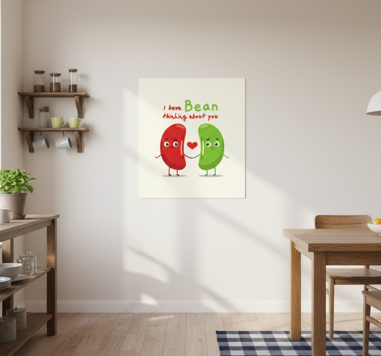 이 매력적인 일러스트는 빨간색과 초록색의 애니메이션 콩 두 개가 손을 잡고 있는 모습을 담고 있습니다. 장난기 가득한 캐릭터들은 따뜻함과 애정을 발산하며, 재치 있는 문구 'I have Bean thinking about you.'가 그 매력을 더합니다. 밝은 배경은 생동감 넘치는 색상을 강조하여 즐거운 장면을 만들어냅니다. 주방용 포스터 콩으로 만든 재미있는 명언은 주방을 더욱 즐겁고 창의적인 공간으로 만들어 줄 멋진 아이템입니다. 이 포스터는 고유한 디자인으로, 그래픽 요소와 함께 재미있는 명언이 조화를 이루어 주방의 분위기를 한층 밝게 해줍니다.