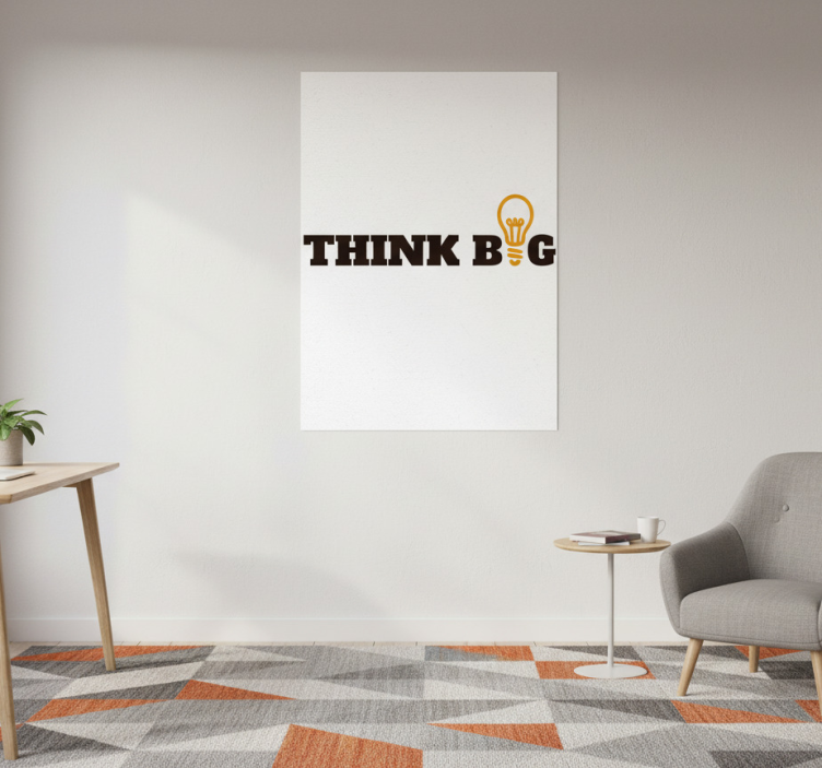 이미지는 'THINK BIG'라는 문구가 두드러지게 표시된 미니멀한 인테리어 공간을 보여줍니다. 이 텍스트는 대담한 타이포그래피와 창의성 및 혁신을 상징하는 전구 그래픽이 결합되어 있습니다. 현대적인 의자와 사이드 테이블 같은 요소들이 방의 미적 매력을 더하고 있습니다. 사무실용 침실 포스터 큰 꿈을 꾸세요는 현대적인 디자인으로, 꿈과 영감을 주는 메시지를 담고 있습니다. 이 포스터는 세미 매트 마감으로 제작되어 반사가 없으며, 높은 색상 강도를 자랑하여 인테리어의 품격을 높여줍니다. 사무실이나 침실에 걸어 두면 언제나 긍정적인 에너지를 불어넣어주는 작품이 될 것입니다.