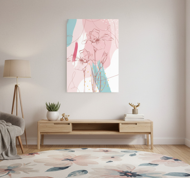 이 작품은 부드러운 분홍색과 차가운 파란색이 어우러진 생동감 있는 배경 위에 섬세한 꽃들을 보여줍니다. 디자인은 우아한 선 작업과 추상적인 형태를 특징으로 하여 조화로운 구성을 만들어냅니다. 금색 악센트가 추가되어 럭셔리한 느낌을 주며, 현대적인 홈 데코나 예술 공간에 적합한 요소입니다. 꽃과 식물이 있는 포스터 플로랄 모던 비닐 러그