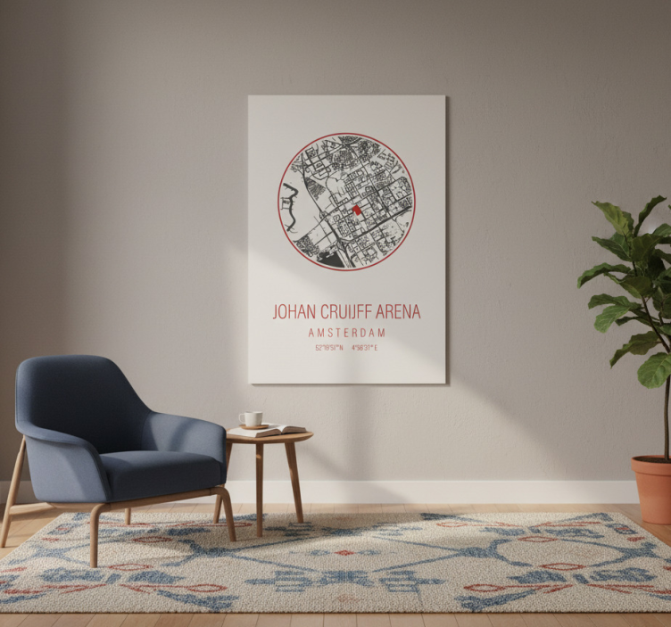 이 이미지는 암스테르담의 Johan Cruijff Arena를 보여주는 세련된 벽 예술 작품입니다. 원형 지도 디자인은 눈에 띄는 빨간 마커로 위치를 강조합니다. 아래에는 현대적인 글꼴로 장소의 이름과 좌표가 우아하게 표시되어 있으며, 이는 세련된 인테리어와 잘 어울립니다. 스포츠 포스터 암스테르담 아레나는 독창적인 디자인과 강렬한 색감으로 여러분의 공간을 환하게 밝혀줄 매력적인 제품입니다. 이 포스터는 암스테르담 아레나의 생동감 넘치는 순간을 포착하여 여러분의 벽을 장식하는 데 완벽한 선택입니다.
