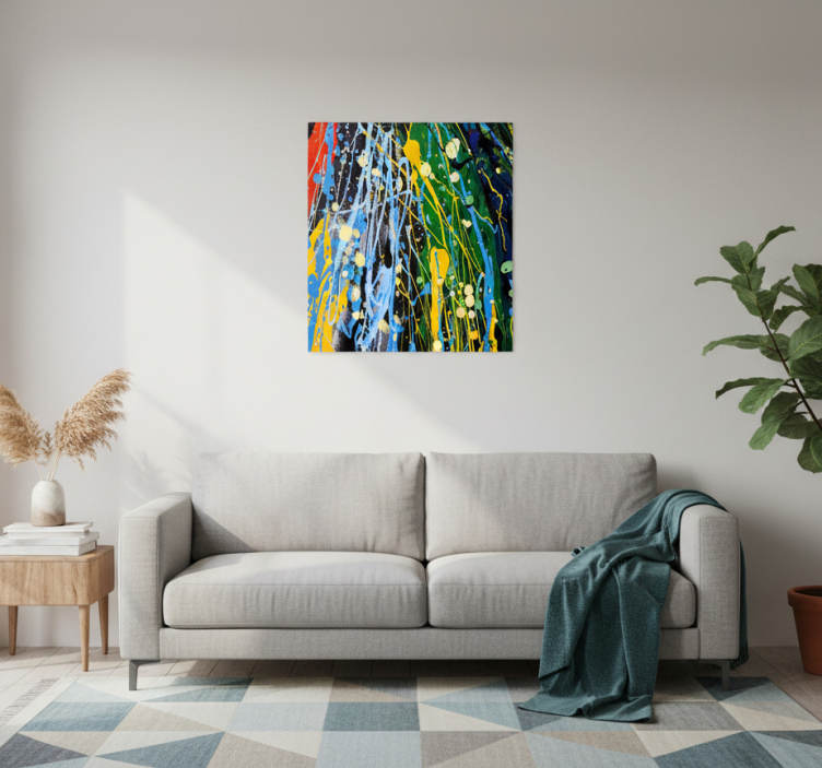 벽에 두드러지게 전시된 생동감 있는 예술 작품은 파랑, 노랑, 초록, 빨강의 역동적인 색상 조합으로 에너제틱한 시각적 효과를 만들어냅니다. 그 아래에는 현대적인 회색 소파가 현대적인 미학을 보완하며, 아늑한 담요가 질감을 더합니다. 자연 채광은 공간의 전체적인 분위기를 한층 더 향상시킵니다. 거실용 포스터 침실 아트 무지개 색 splash는 현대적인 감각을 더해주는 독특한 그래픽 디자인으로, 어떤 공간에서도 생동감을 불어넣어 줍니다. 이 포스터는 화려한 무지개 색상이 어우러져 있어, 거실이나 침실에서 눈길을 사로잡는 매력을 발산합니다. 아트워크는 고급 소재로 제작되어, 공간에 조화롭게 어우러지는 동시에 개인의 취향을 반영할 수 있는 완벽한 선택입니다.