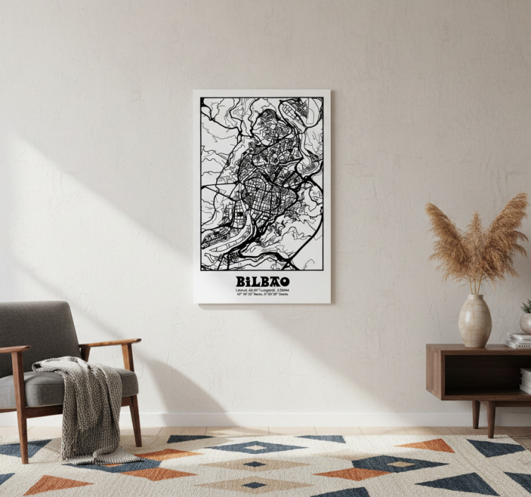 이 예술적 표현은 비바오의 자세한 흑백 지도를 특징으로 하며, 복잡한 거리 배치와 지리적 윤곽을 보여줍니다. 인상적인 디자인은 단순한 벽에 장착되어 있으며, 현대적인 장식 요소와 결합되어 방 안에 아늑한 분위기를 만들어냅니다. 도시 풍경 애호가들에게 이상적입니다. 거실용 포스터 침실 빌바오 지형도