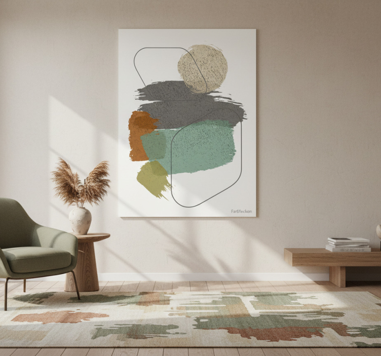 이 이미지는 다양한 브러시 스트로크로 구성된 현대 미술 작품을 보여줍니다. 이 배열은 올리브 그린, 어두운 회색, 그리고 녹슨 색과 같은 질감 있는 색상을 포함하고 있으며, 원형 형태가 강조되어 있습니다. 이는 현대적인 미적 감각을 불러일으키며, 미니멀리즘 장식에 적합합니다. 거실용 포스터 침실 색깔 얼룩