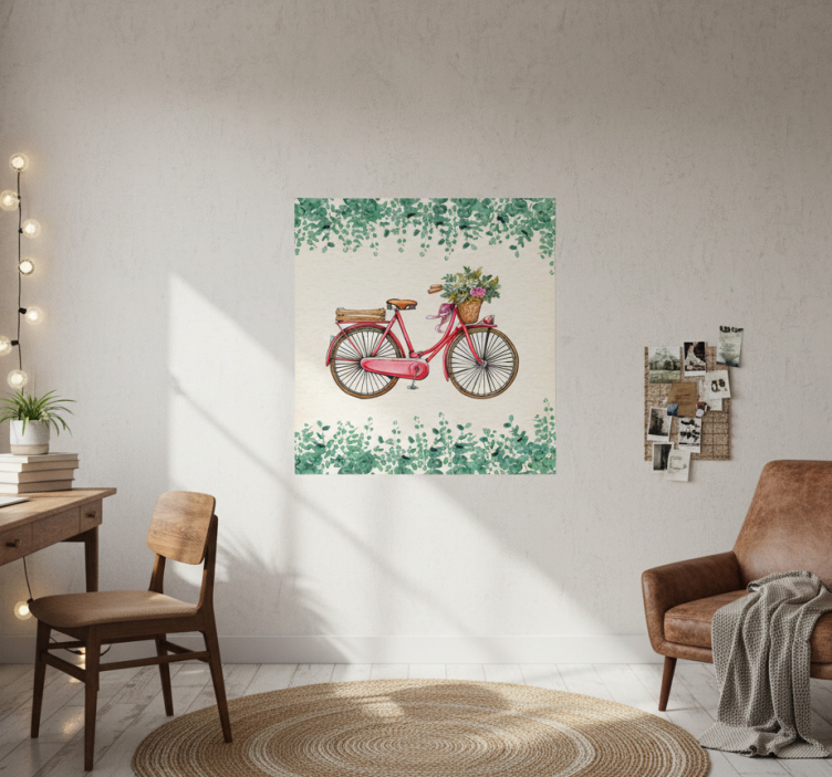 이 매력적인 일러스트는 생동감 넘치는 꽃들로 가득 찬 바구니가 달린 복고풍의 분홍색 자전거를 특징으로 합니다. 자전거를 둘러싼 섬세한 테두리는 무성한 녹색 잎사귀로 구성되어 있어 신선하고 매력적인 분위기를 자아냅니다. 부드러운 배경은 자전거의 향수를 더욱 강조하여 어떤 인테리어에도 잘 어울립니다. 거실용 포스터 침실 빈티지 자전거 인테리어