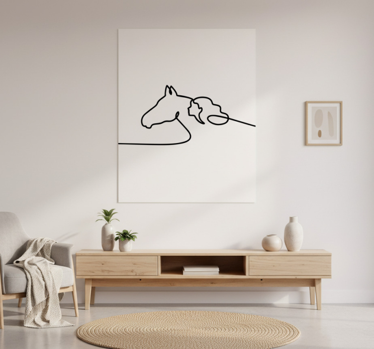 이 이미지는 말과 다른 동물이 함께 있는 미니멀한 선 그림을 특징으로 하여 조화로운 미적 감각을 만들어냅니다. 중립적인 벽 배경에 세팅되어, 이 작품은 현대적인 인테리어 공간을 더욱 돋보이게 합니다. 자연적인 장식 요소와 함께 구성된 이 그림은 우아한 방을 위한 평온함과 세련됨을 반영합니다. 거실용 포스터 침실 말과 여자의 선 그림 일러스트