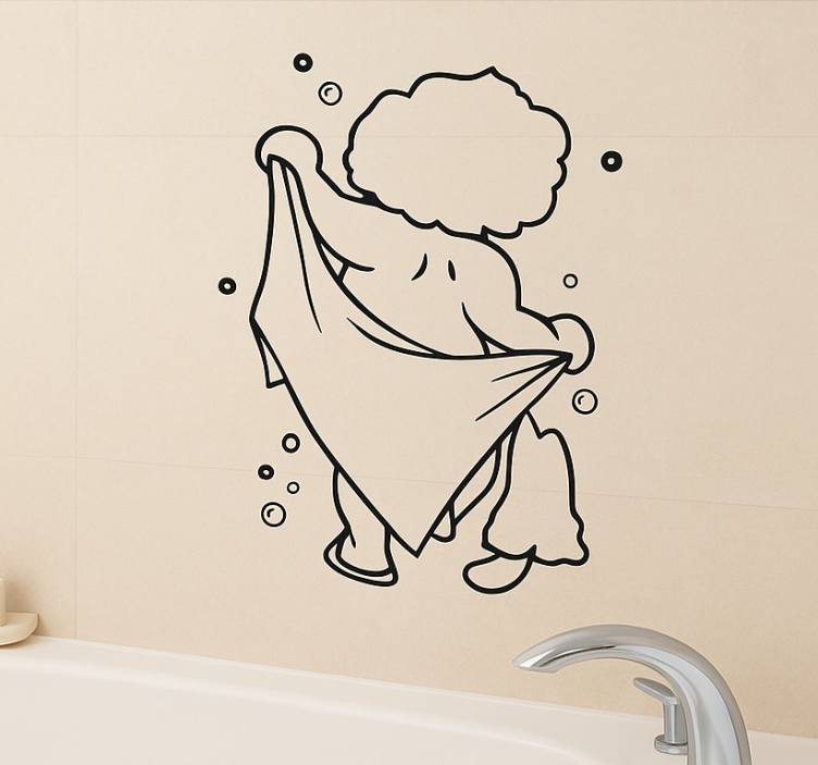 장난기 가득한 만화 캐릭터가 수건을 들고 있으며, 뭔가 재미있는 것을 드러내려는 듯 보입니다. 그 주위에는 장난스러운 거품들이 떠다니며 유쾌한 느낌을 더하고 있습니다. "Life is better when you're laughing"라는 문구는 이 디자인이 어떤 욕실 공간에도 기쁨과 경쾌함을 가져다주고자 하는 의도를 강조합니다. 욕실 벽 스티커 부드럽게 닦아내세요