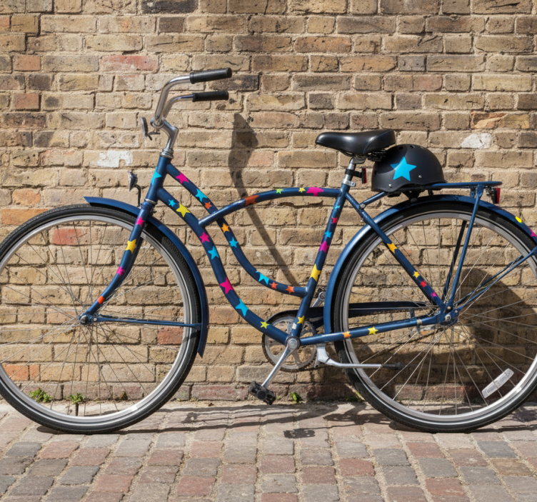 다채로운 별로 장식된 생동감 넘치는 자전거는 장난스럽고 즐거운 미학을 포착합니다. 매끈한 프레임과 어울리는 헬멧은 그 재미있는 특성을 더욱 강조합니다. 이 디자인은 창의성과 개성을 반영하여, 이동 중에도 독특한 스타일을 표현하고자 하는 이들에게 완벽합니다.