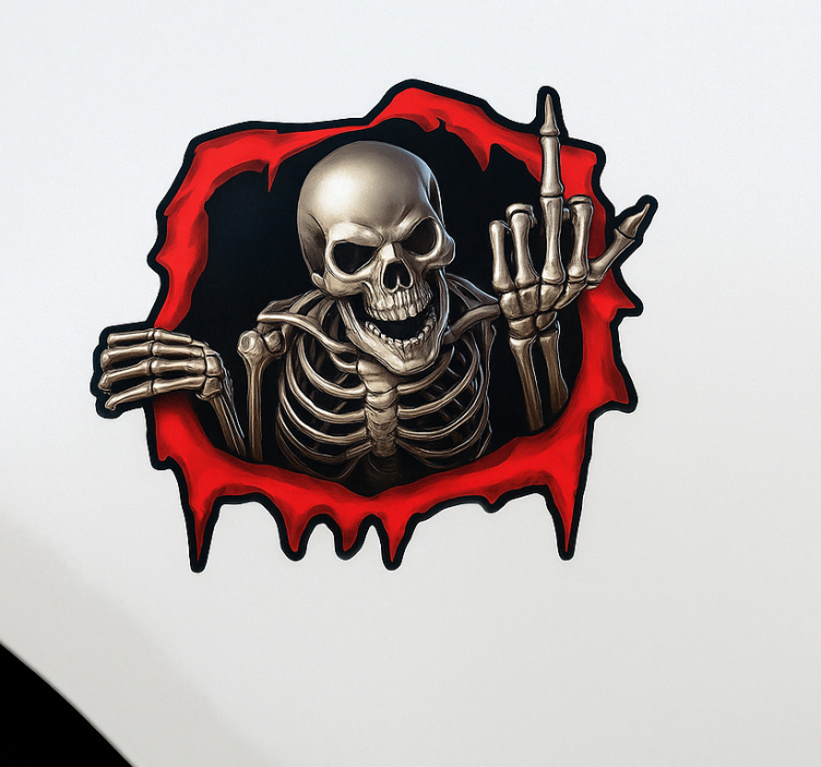 뼈대가 불규칙한 빨간 윤곽선 뒤에 위치해 극적으로 표면을 뚫고 나오는 대담한 디자인. 이 뼈대는 반항적인 제스처를 보여주며 태도와 저항의 느낌을 전달합니다. 이 이미지는 반란의 주제와 어두운 유머를 유쾌하게 포용하는 것을 불러일으키며, 눈에 띄는 비주얼로 주목을 끌고 있습니다. 자동차 용 스티커 3d 해골 스티커는 독창적인 디자인으로 자동차에 개성을 부여하는 최고의 선택입니다. 이 스티커는 생동감 넘치는 3D 효과를 통해 해골 모양을 사실적으로 표현하며, 자동차의 외관을 더욱 매력적으로 만들어줍니다. 독특한 그래픽은 시선을 사로잡으며, 친구들과의 드라이브에서도 주목받을 것입니다!