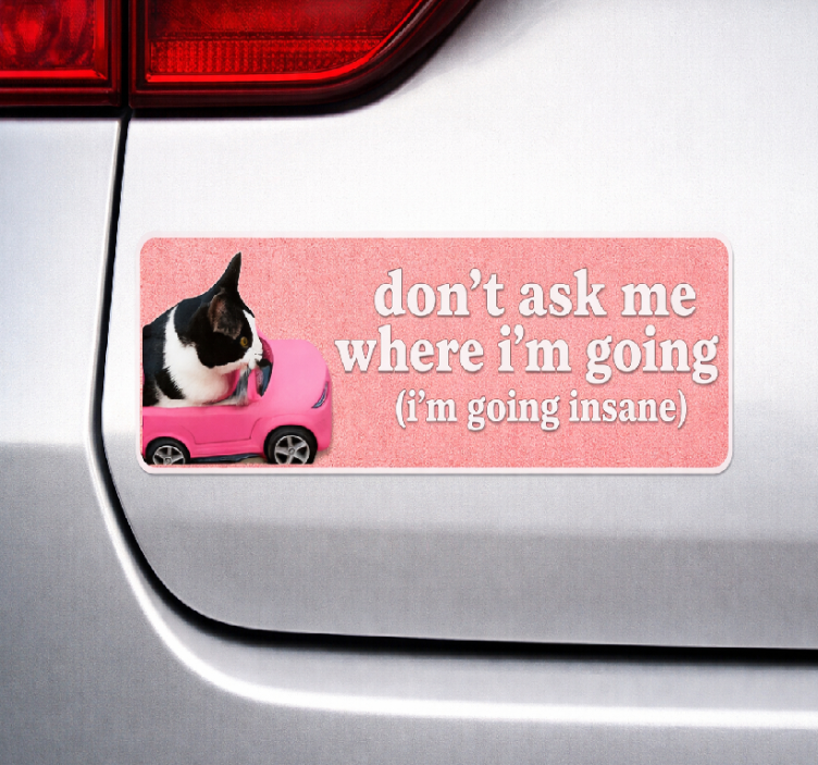 장난기 가득한 디자인으로 장난감 차에 탄 고양이가 그려져 있으며, 가벼운 문구와 함께 어우러져 있습니다. "don’t ask me where I’m going (i’m going insane)"라는 인용구는 일상의 혼란을 유머러스하게 전달하며, 압도당한 기분을 느끼는 모든 이들과 그 부조리를 포용하는 사람들에게 공감됩니다. 자동차 용 스티커 나는 어디로 가는지 묻지 마세요