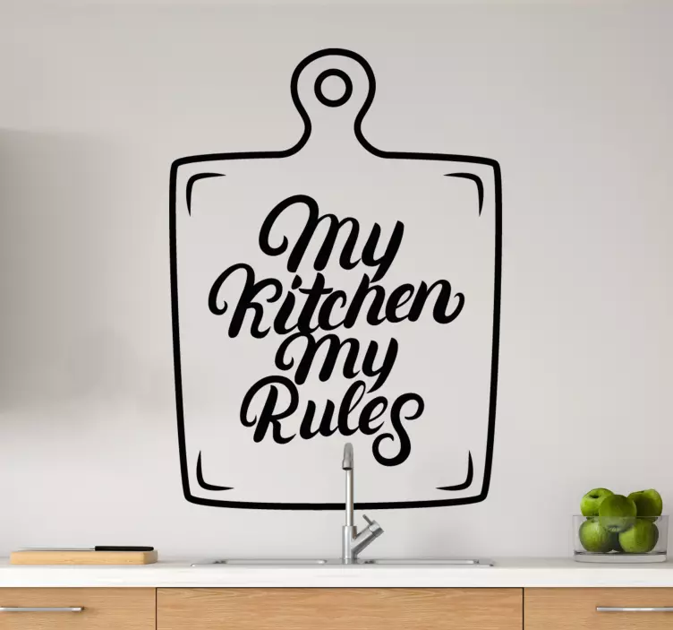참조:: A50665요리 애호가들을 위한 생동감 넘치는 표현으로, 'My Kitchen My Rules.'라는 문구가 포함되어 있습니다. 이 눈길을 끄는 디자인은 주방 공간에 개인적인 터치를 더해주며, 창의성과 요리의 자유를 촉진합니다.